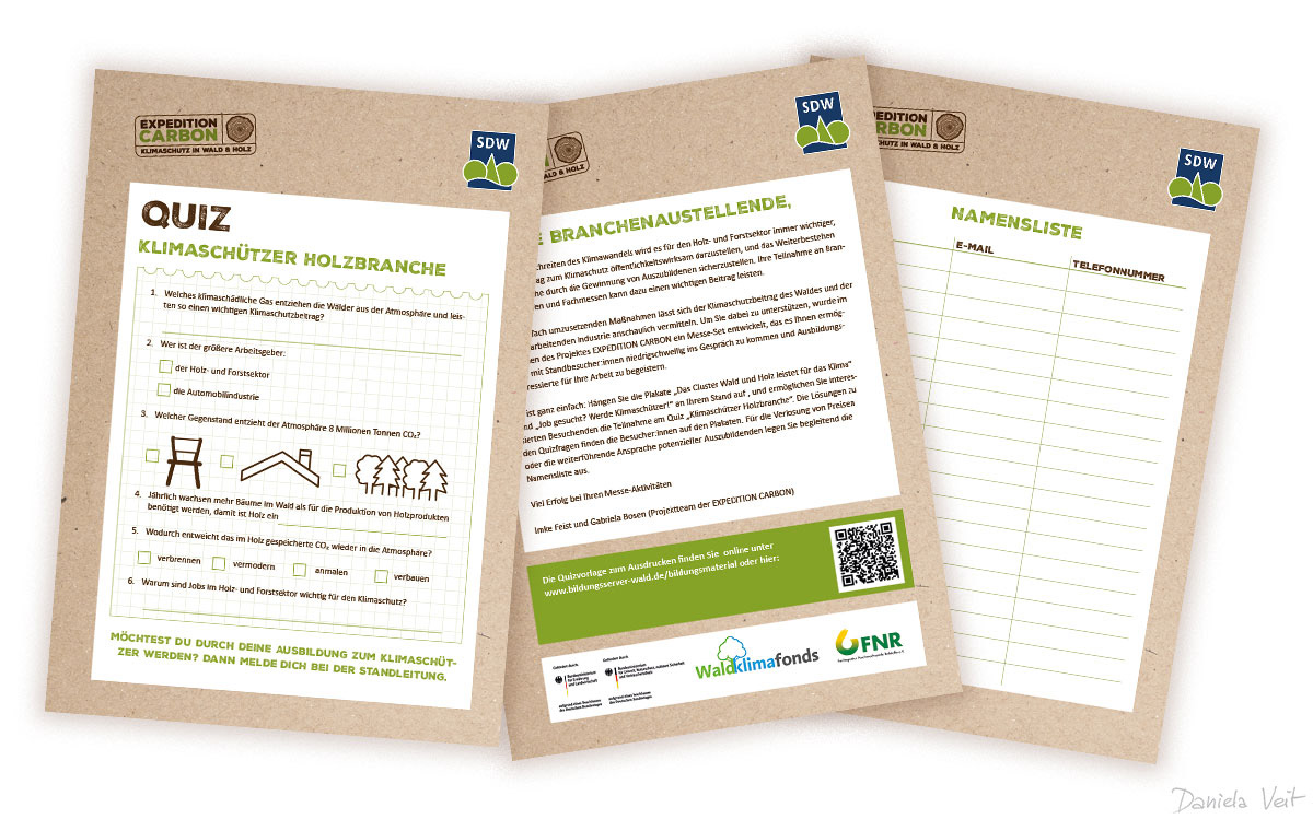 Für die Schutzgemeinschaft Deutscher Wald e.V. durfte ich diese Plakate und Dokumente für den Auftritt auf der Expedition Carbon Messe gestalten.